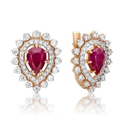 первая страница > Ювелирные изделия > PLATINA Серьги с английским замком из красного золота 585 пробы c рубином и бриллиантами